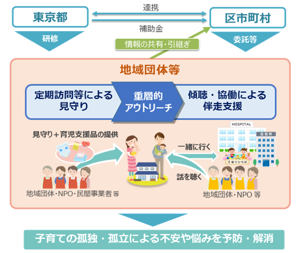 こうした背景のもと、東京都では、子育て家庭に寄り添ったきめ細かな施策展開により、“子育てのつながり創出”に取り組んでいます。
