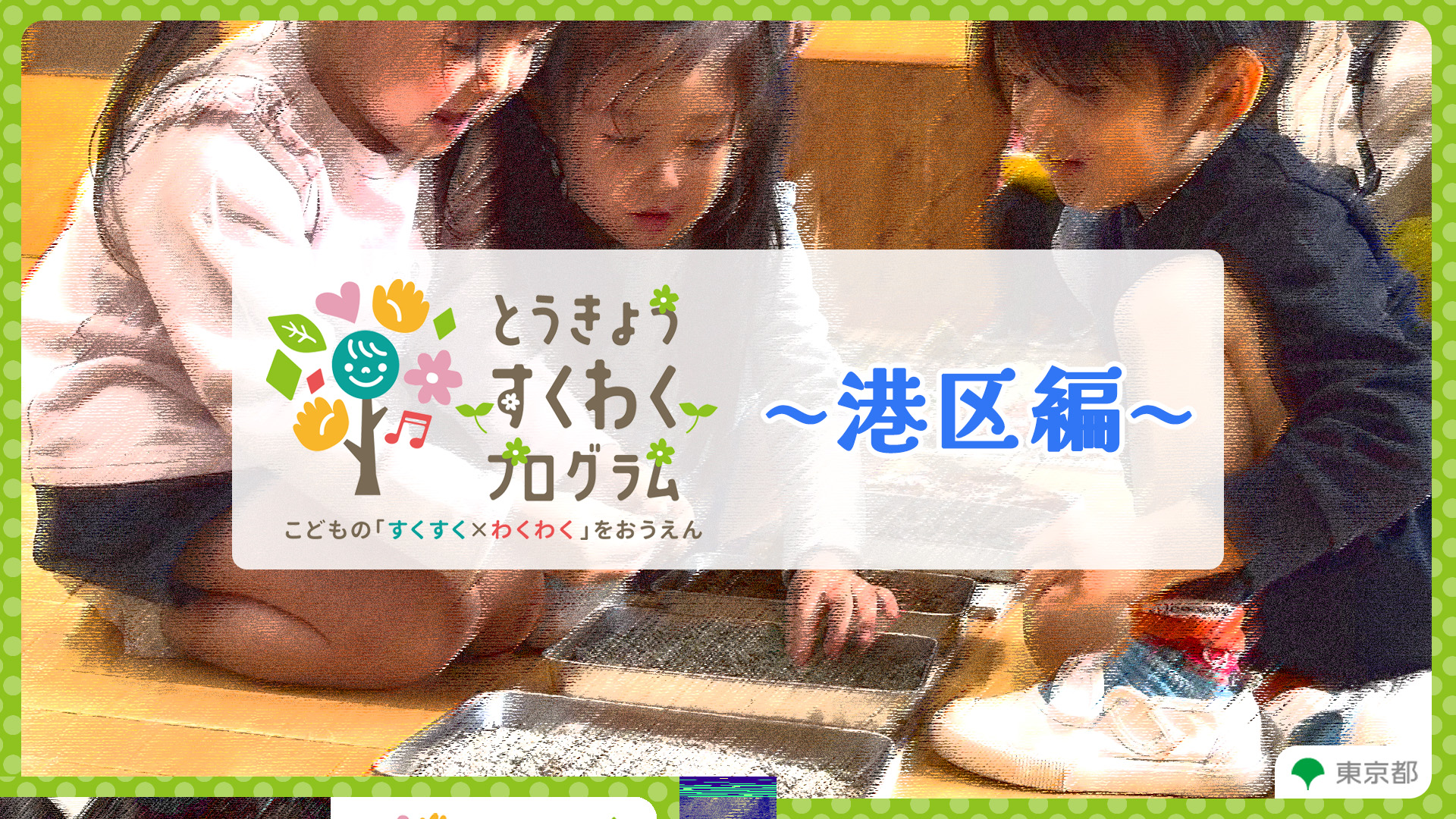 「とうきょう すくわくプログラム」は、すべての乳幼児の「伸びる・育つ(すくすく)」と「好奇心・探究心(わくわく)」を応援する幼保共通のプログラムです。幼稚園や保育所といった施設類型の垣根を越え、主体的・協働的な探究活動を通じ、子供の豊かな心の育ちをサポートします。