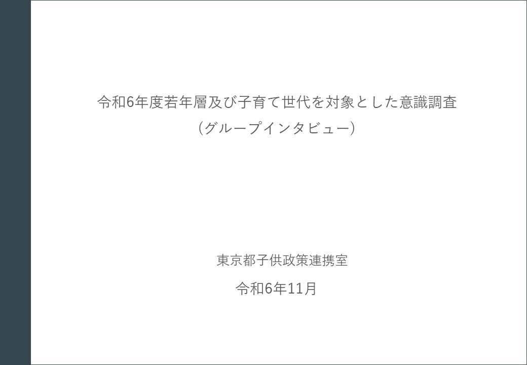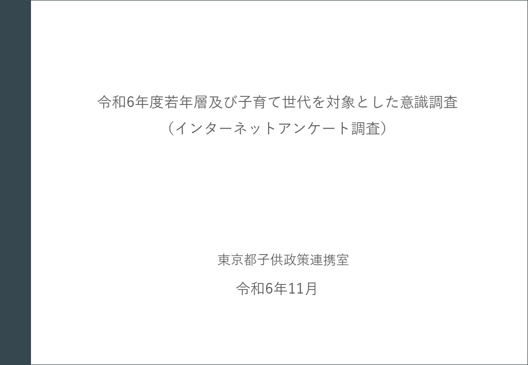 東京都では、都民の生活実態や結婚・出産・子育てに関する意識を把握するため、若年層や子育て世代を対象とする意識調査を実施しています。