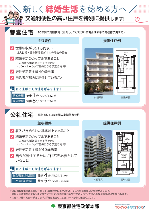 結婚を予定している方に向けた住宅のご案内